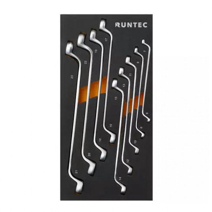 | RT-WBE9 | Набор ключей накидных 75° RUNTEC CrV 6x7-21x23 мм в ложементе EVA, 9 предметов, 185x375x40 мм | |