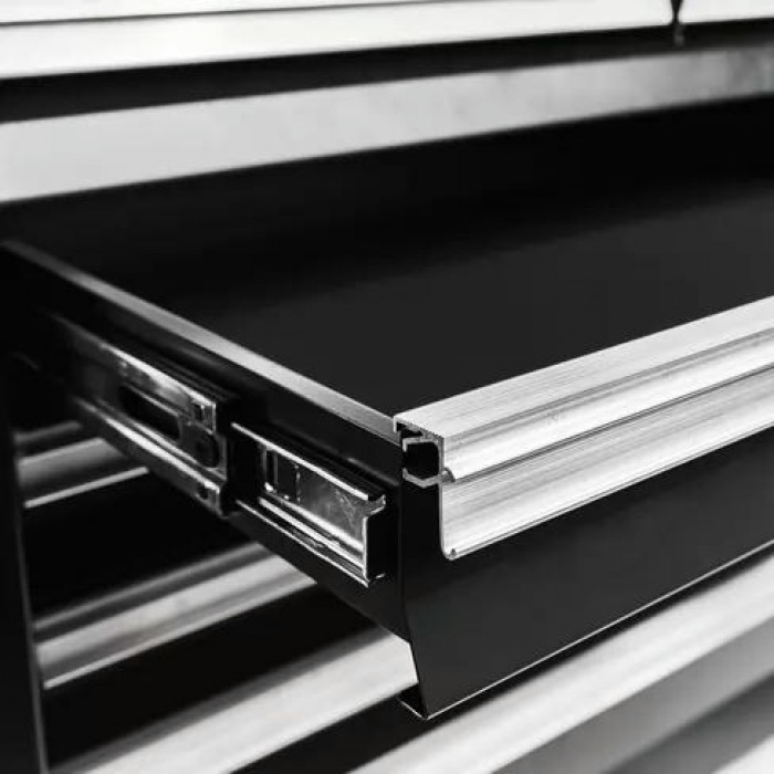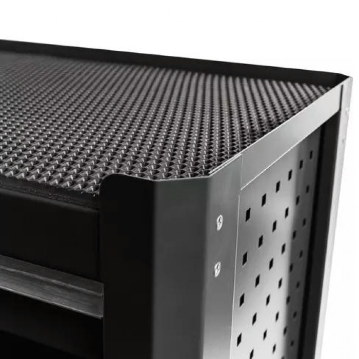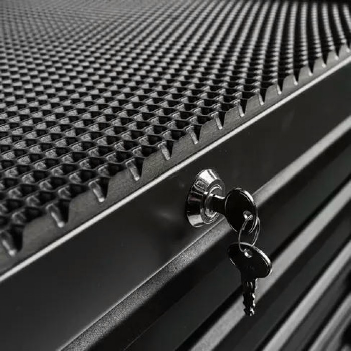 Текстурные ручки ящиков для удобного использования в перчатках. Центральный замок для защиты содержимого от несанкционированного доступа. Толщина металла — 1.5 мм, что гарантирует прочность конструкции и долговечность в условиях интенсивной эксплуатации.