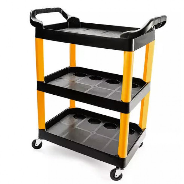 Тележка с 3 открытыми полками для компактного хранения и быстрого перемещения инструмента к рабочему месту. Грамотное решение для проведения работ по автодетейлингу.
