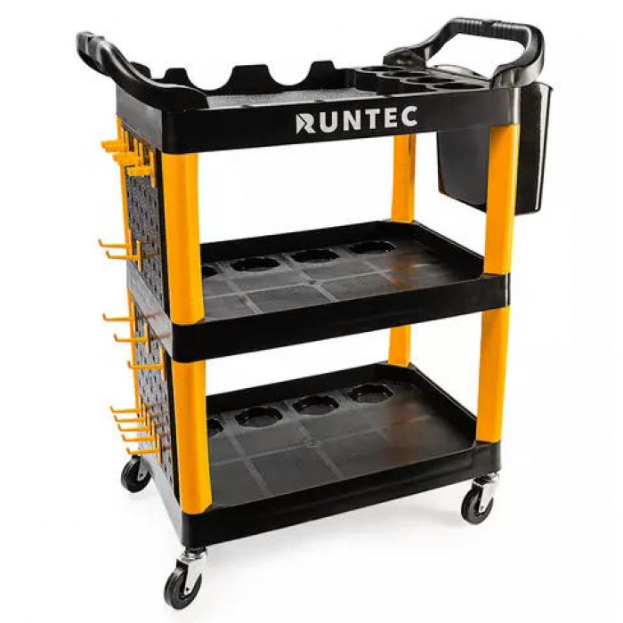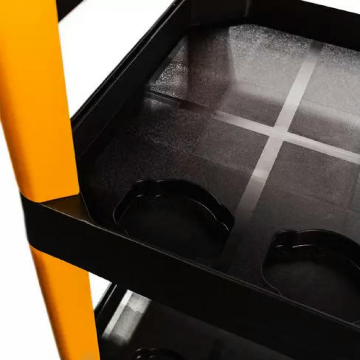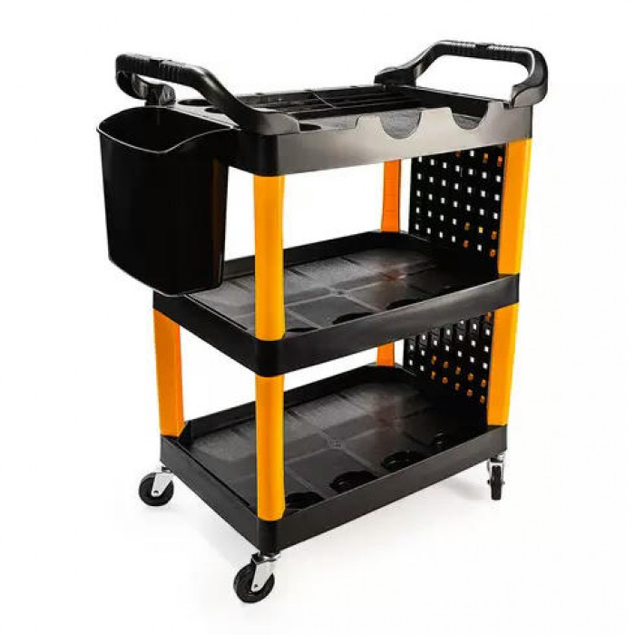 Тележка с 3 открытыми полками для компактного хранения и быстрого перемещения инструмента к рабочему месту. Грамотное решение для проведения работ по автодетейлингу.