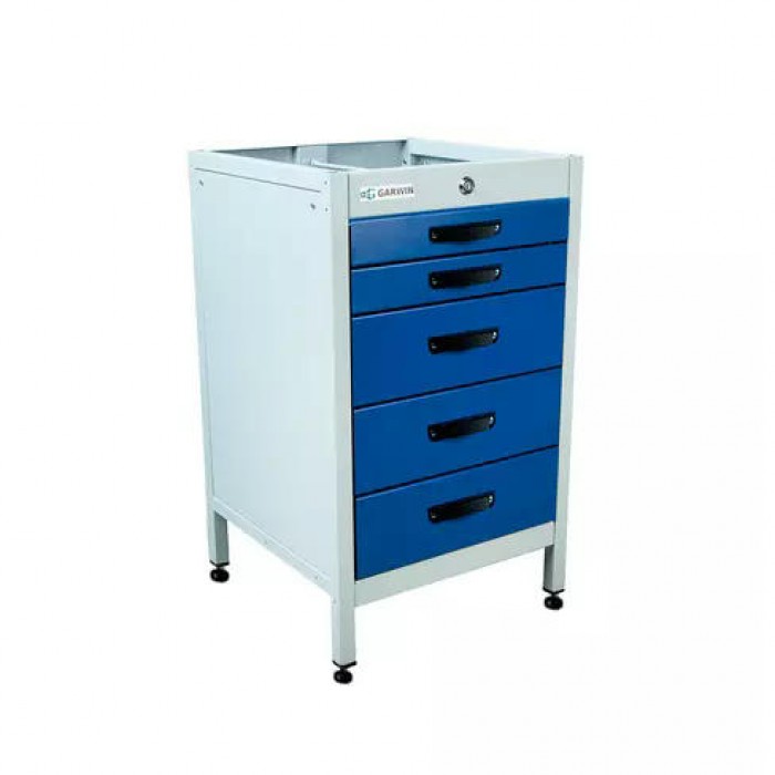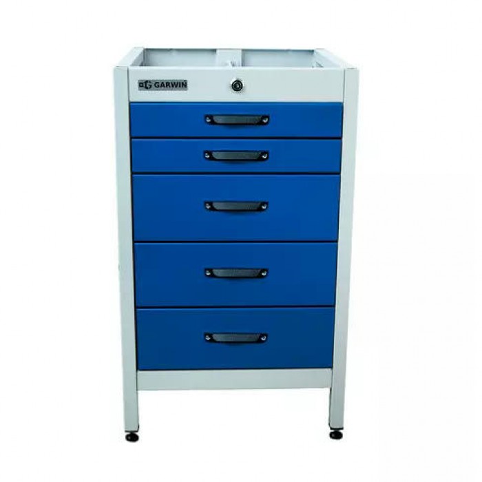 - Тумба 5 ящиков Standart, без крышки, светло-серый карскас, синие ящики, 7035+5005 GARWIN PRO MST-T5-7035-5005