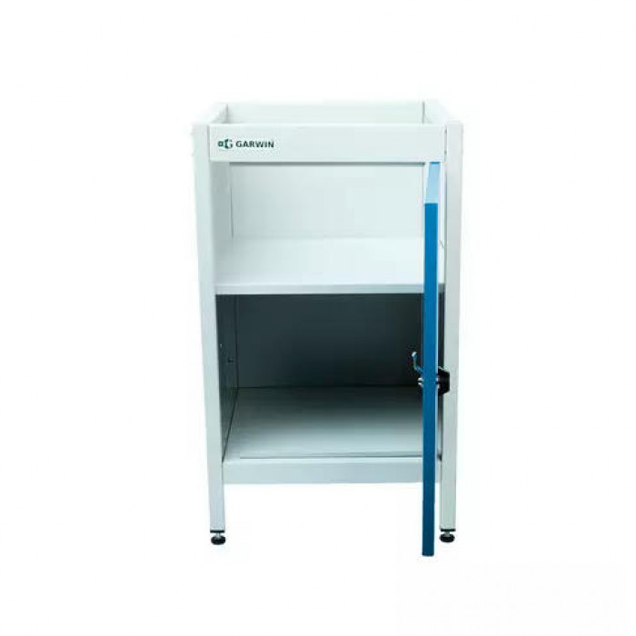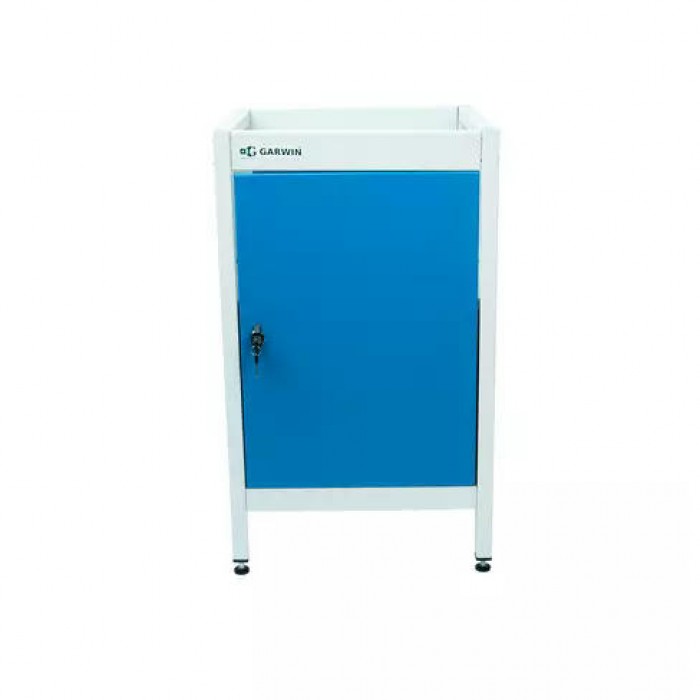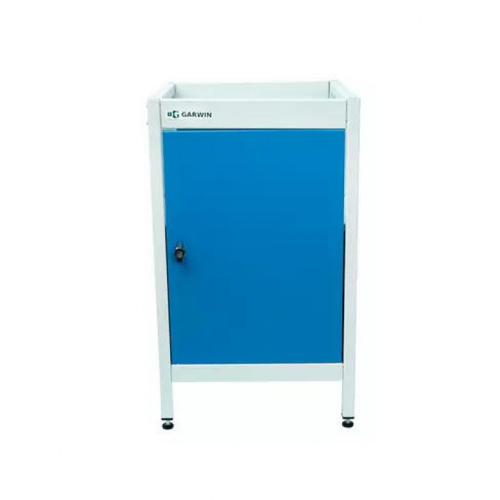 MST-T-7035-5015 – тумба с дверцей светло-серого RAL7035 каркаса и светло-синей RAL5015 дверцей от GARWIN PRO. Корпус изготовлен из высокопрочной стальной, устойчивой к ржавчине и механическим повреждениям.